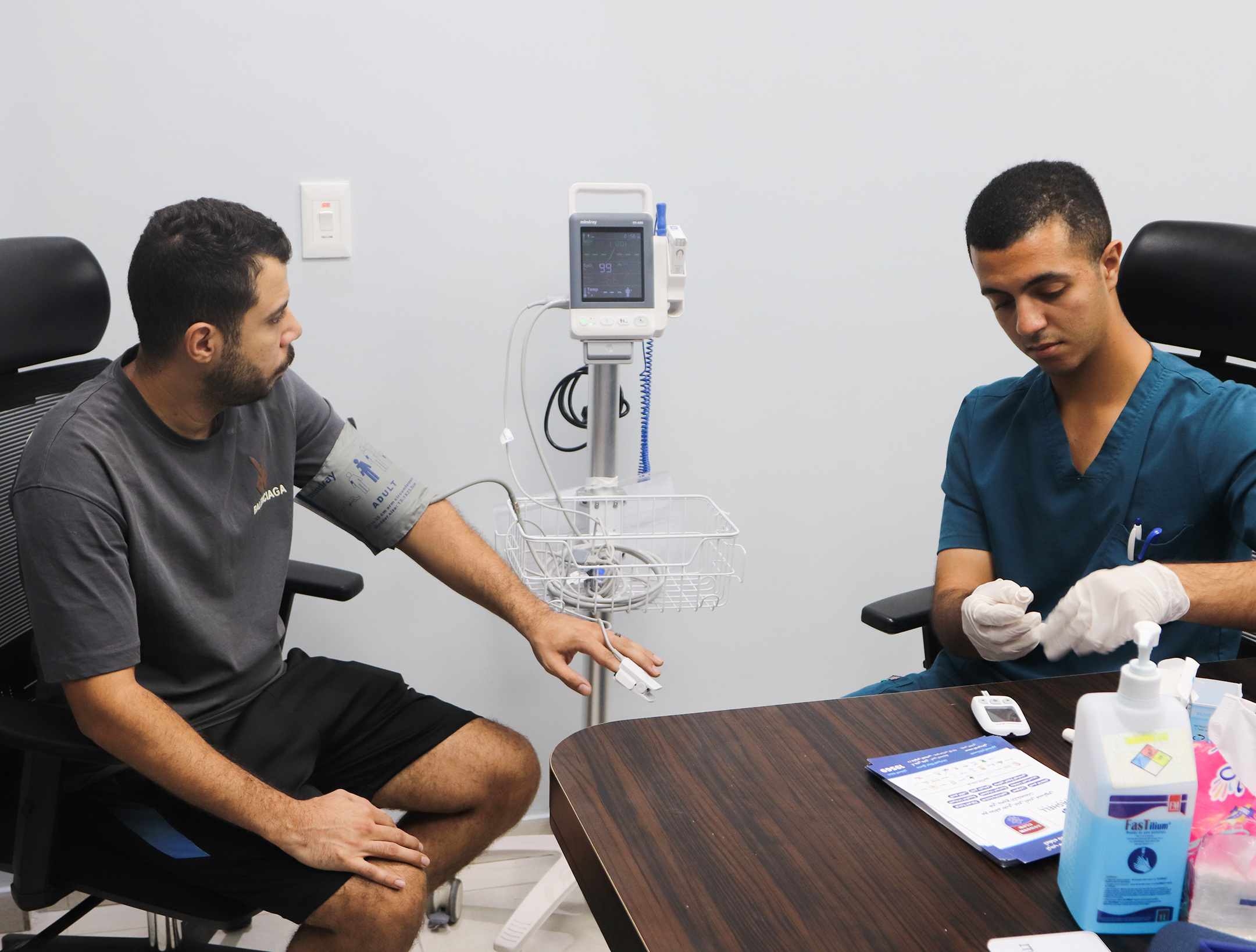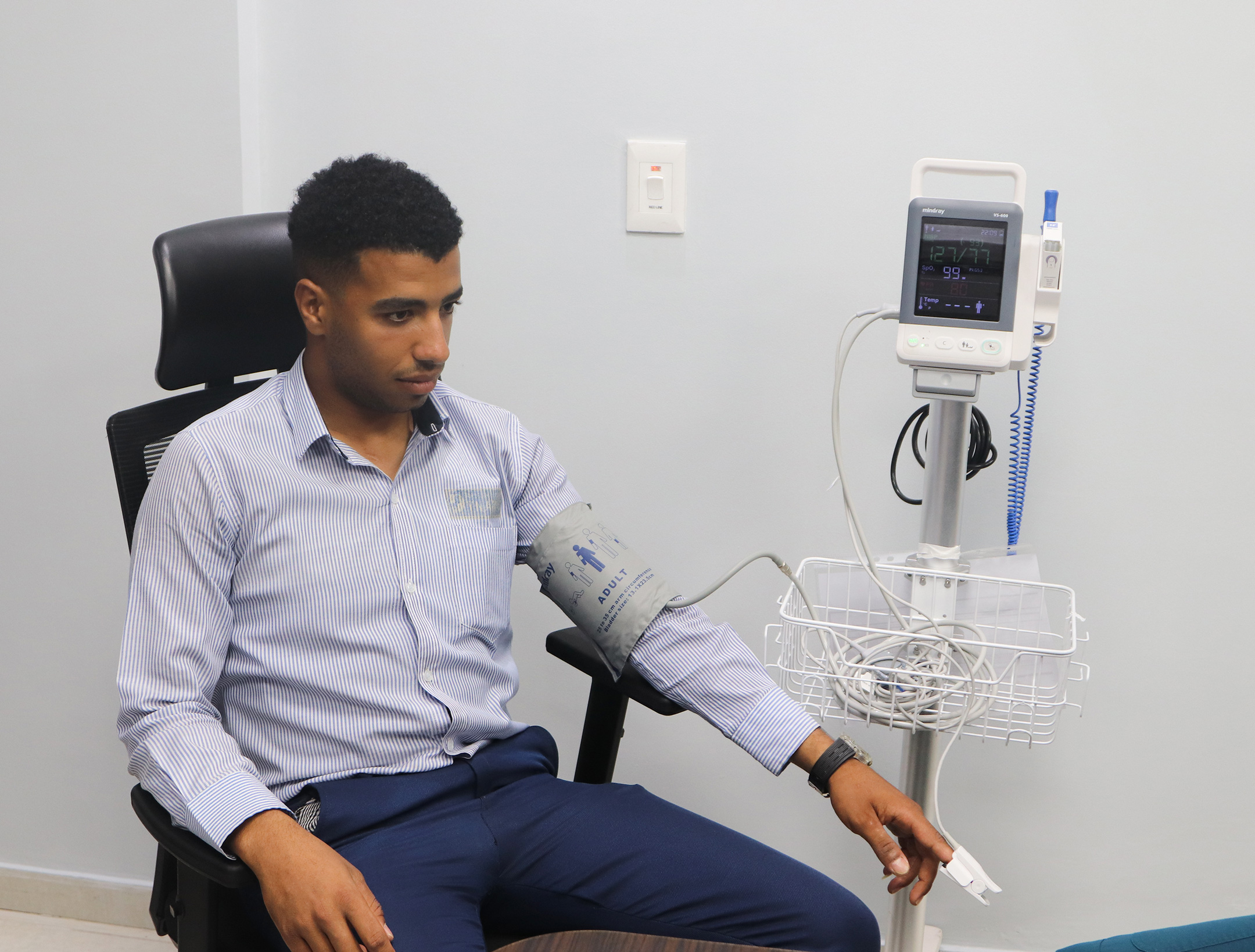 A specialized medical team from Seashell Hospital was present at ITQAN Company in LAYAN Residence Compound, offering free medical services including blood sugar, blood pressure, and heart rate measurements, as well as InBody analysis.